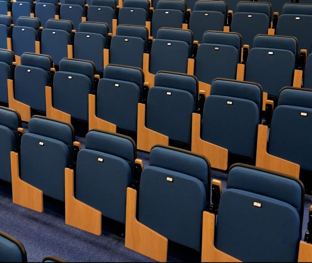 Audience Systems worked with Bournemouth school to replace seating in the school’s lecture theatre. The school were looking to upgrade from some tired folding seats with long writing benches to something a little more flexible.