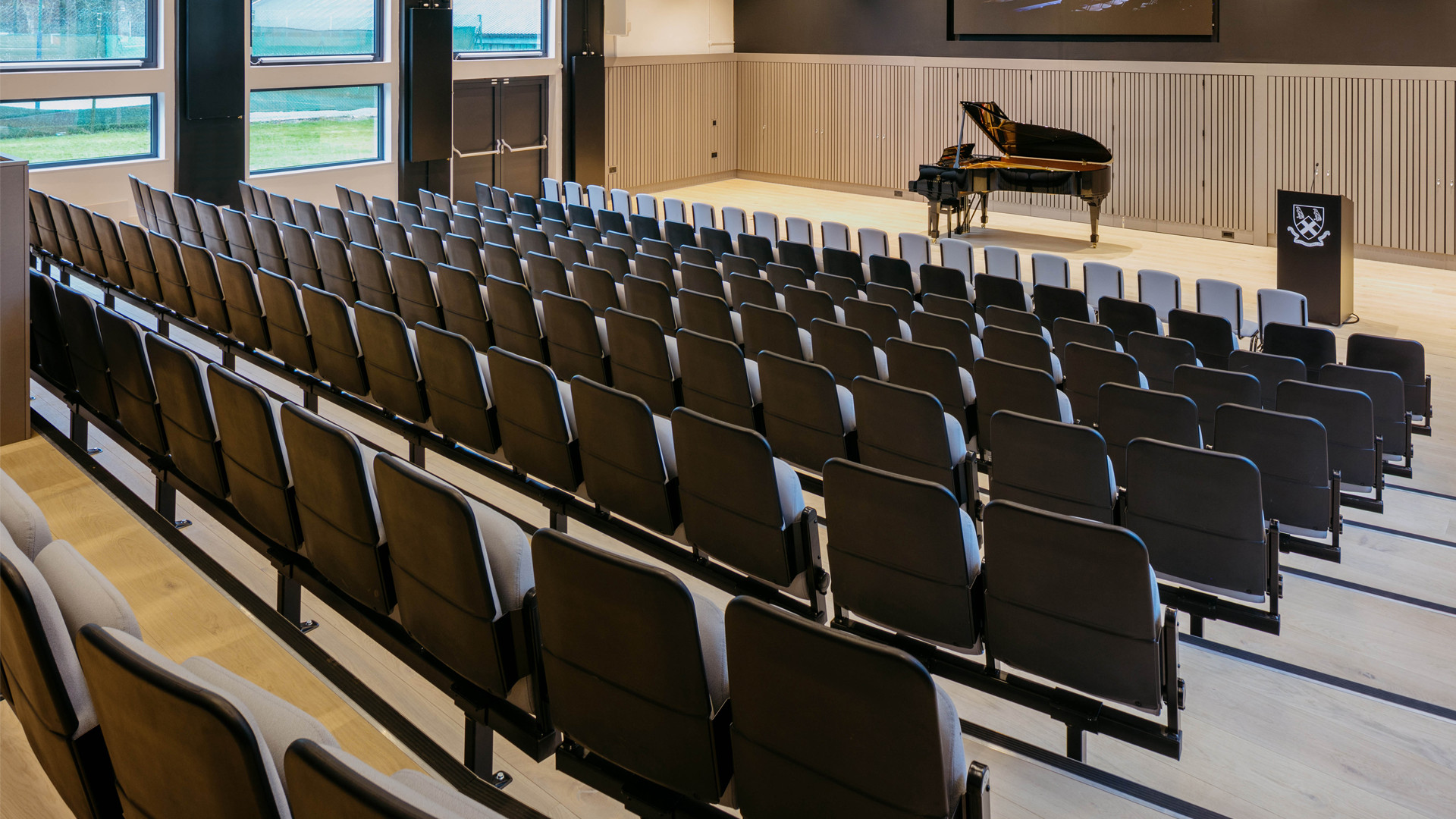 The refurbishment of the music hall brings the experience of a professional concert hall right to the heart of the school. As well as new seating, the refurbishment includes new windows, improved temperature control, acoustic baffles and significantly enhanced audio-visual equipment, including a video wall.