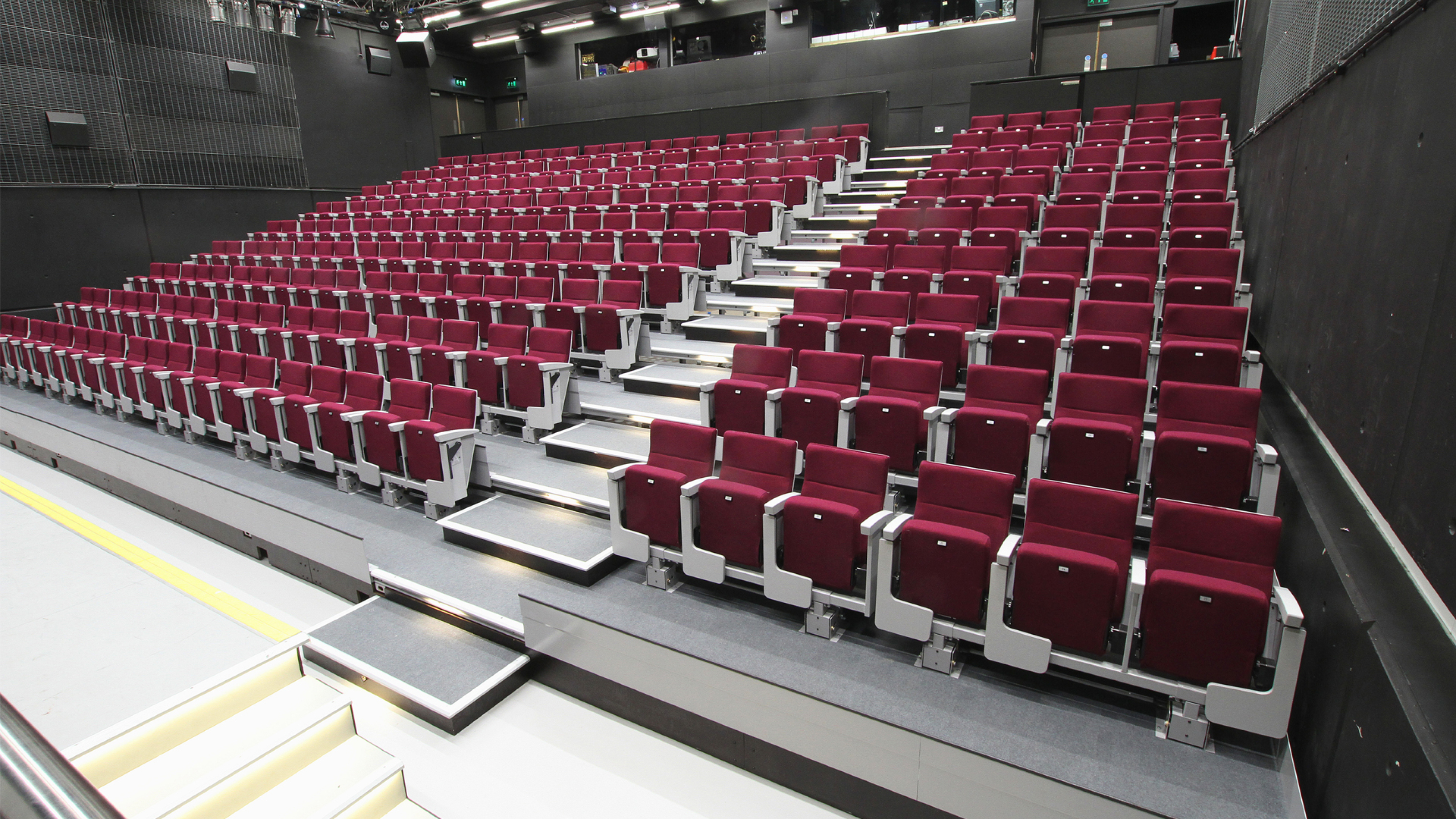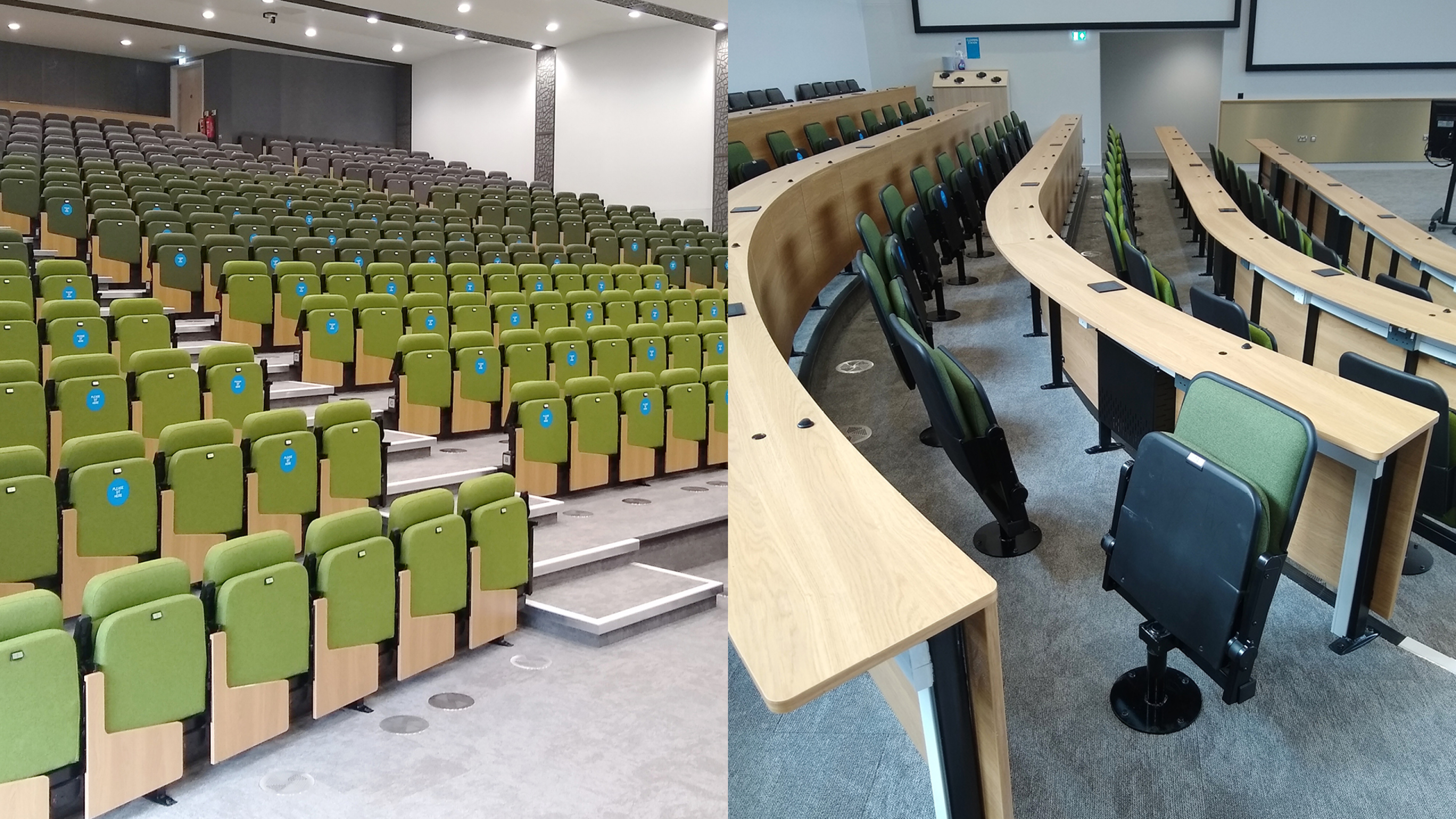 Made-to-measure lecture theatre seating with durable tip-up mechanism and continuous writing tablet. We can also install the tiering if required.