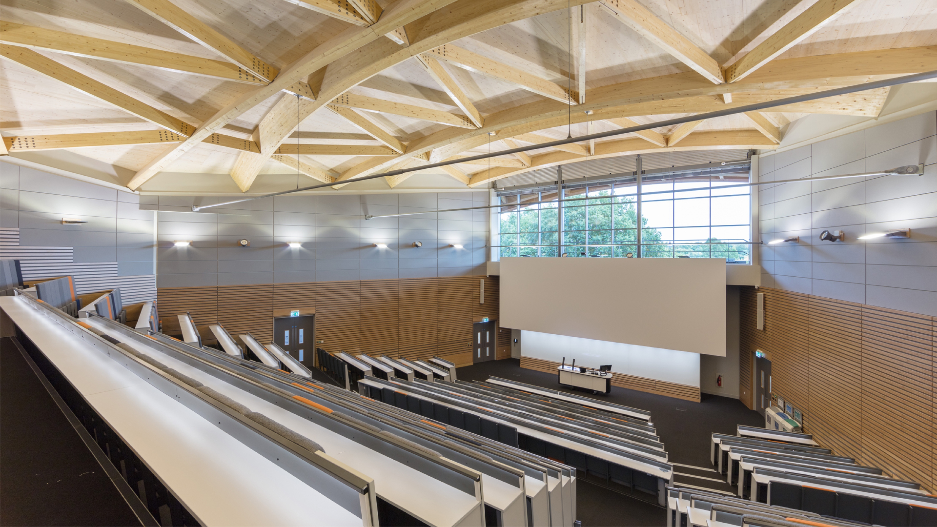 Lecture theatre seating consisting of pods seating 3-6 students to facilitate group work