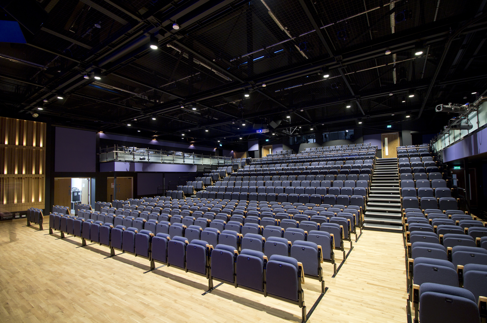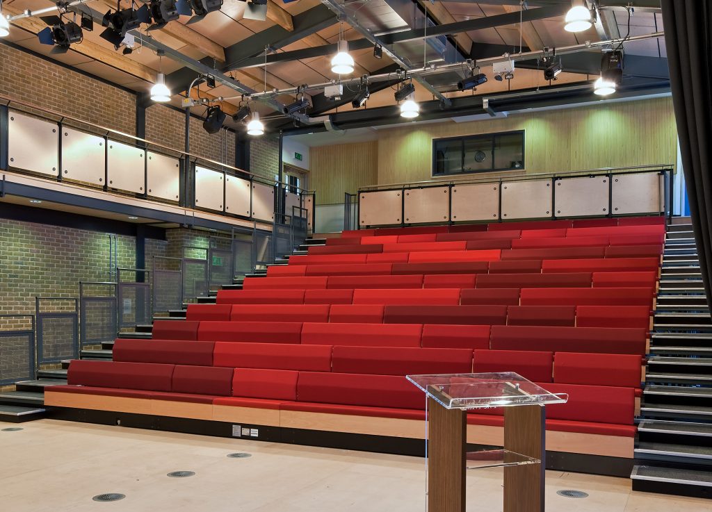 Retractable seating combined with “Matrix” removable chairs at the American Community School, Cobham UK