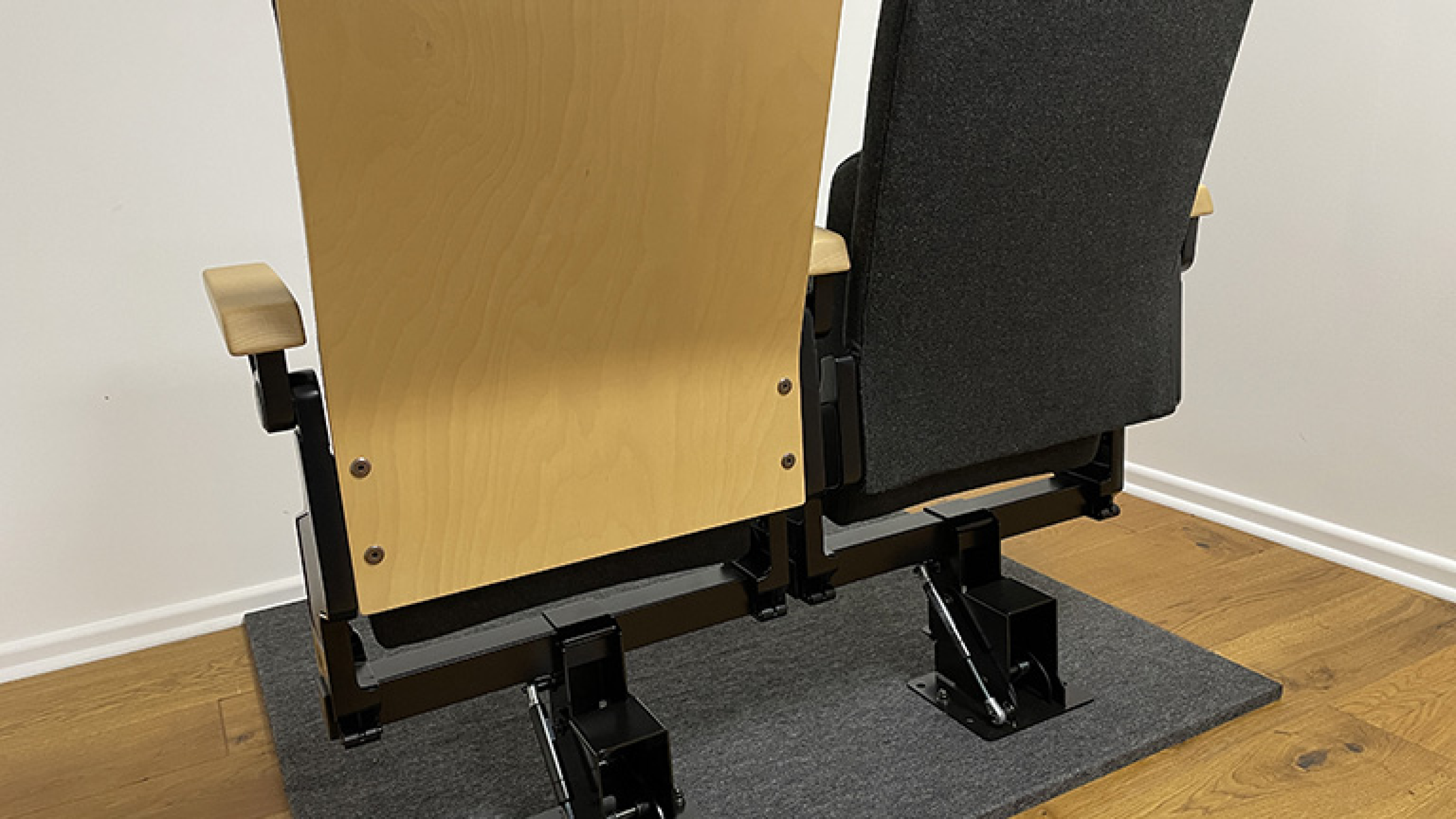 Optionally, chairs can be mounted on beams in groups of up to four, with shared fold-down yokes.