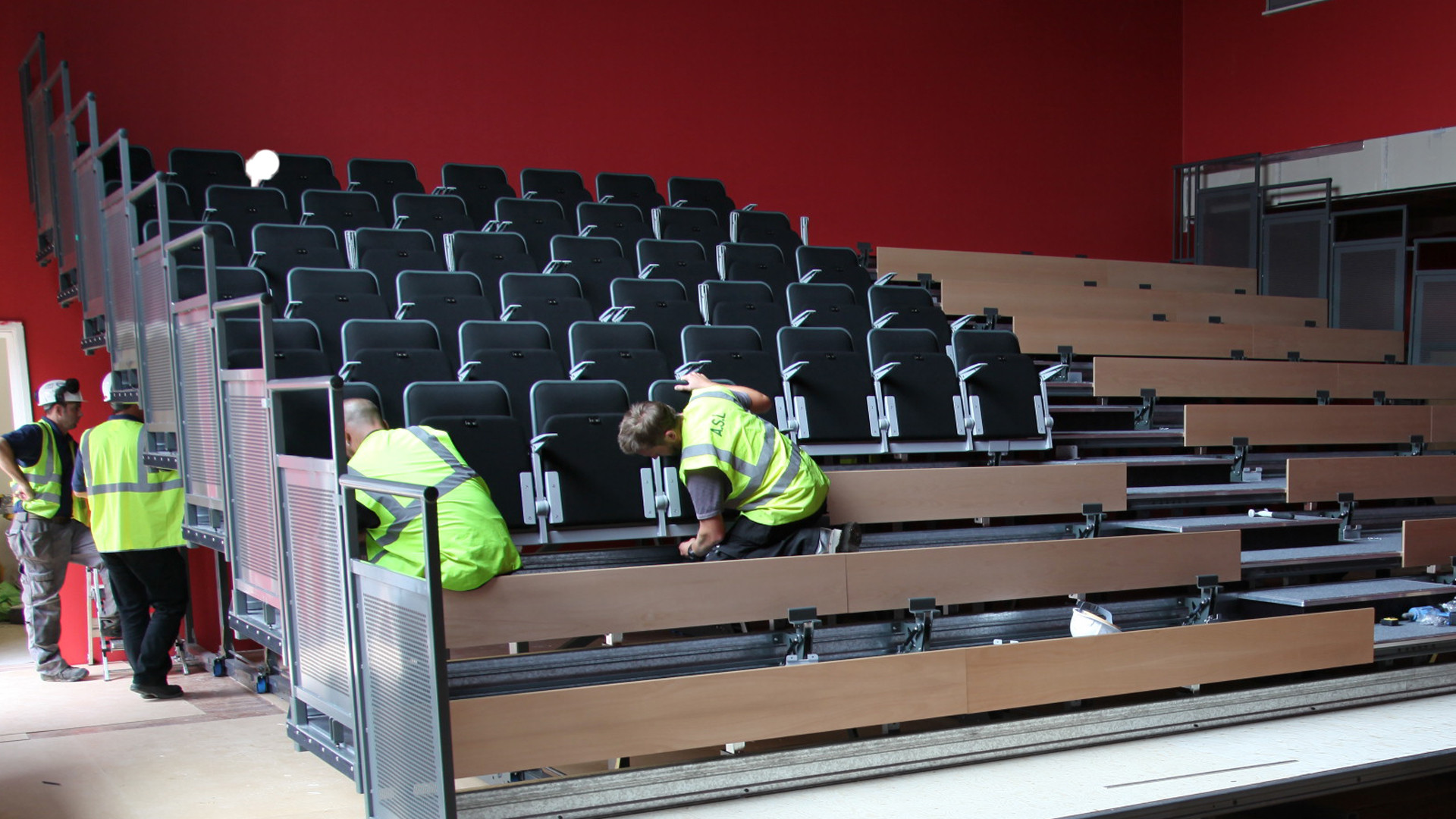 Much of the fabrication of our chairs and retractable platforms takes place in our factory, where we run a comprehensive Quality Management System. Each project is manufactured on a bespoke basis from individually prepared precision engineering drawings. Our products then arrive on site in kit form ready for our installers to assemble. This not only reduces our time on site, it also vastly reduces the risk of errors or delays once the installation is underway.